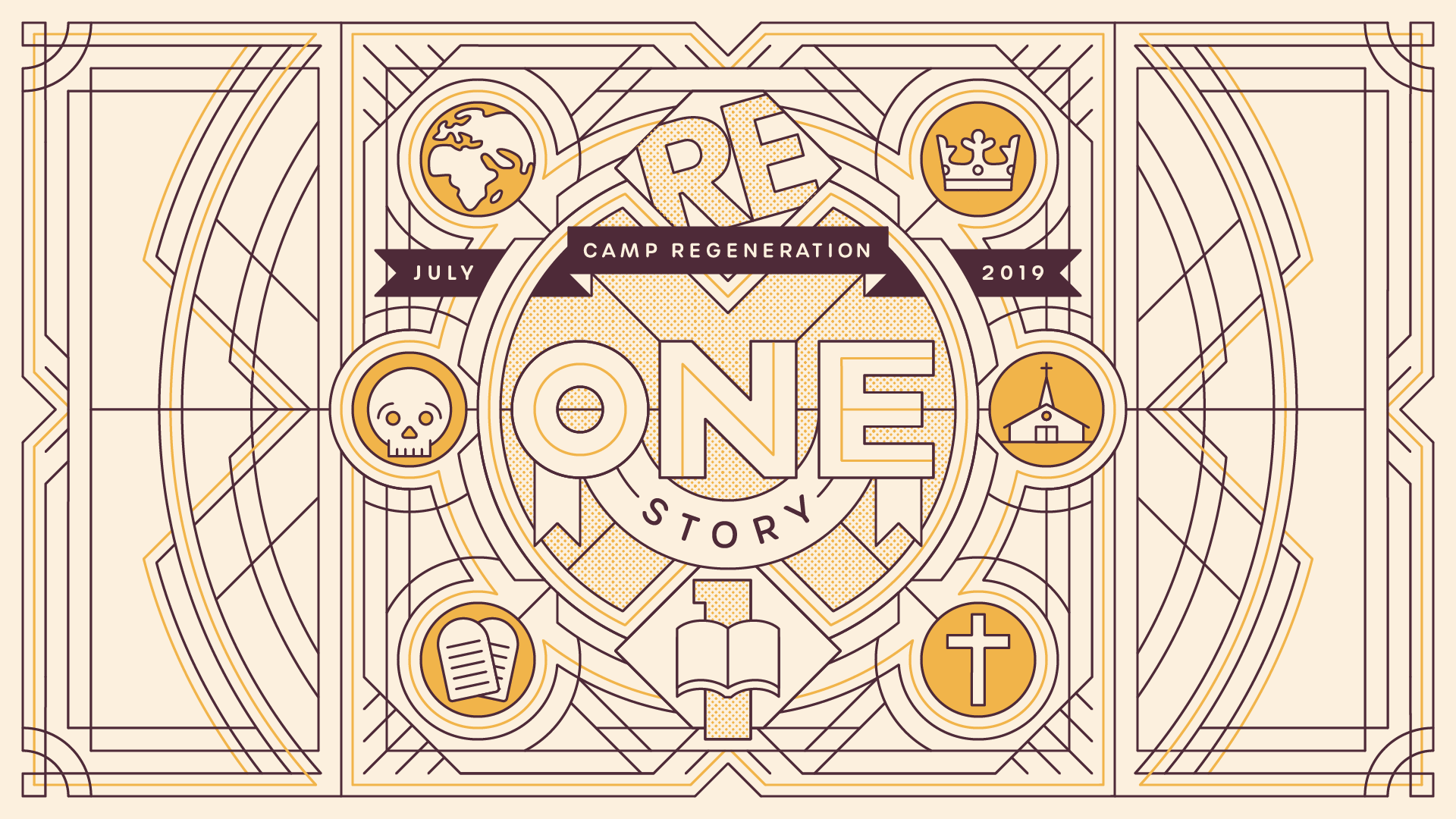 Custom illustrated line artwork for posters, camp booklets, t-shirts and event stage screens.