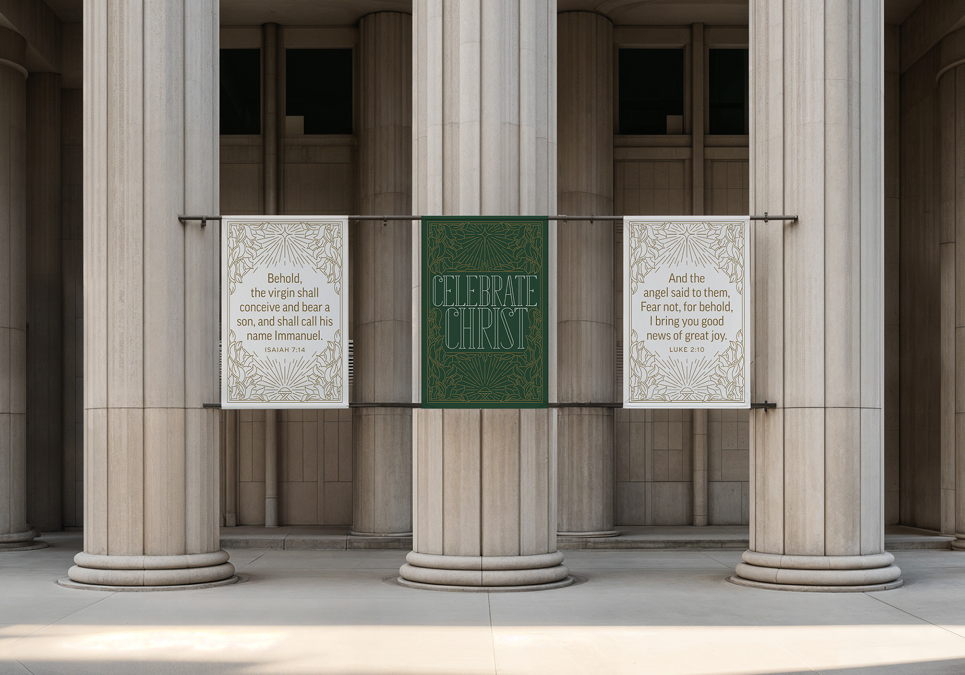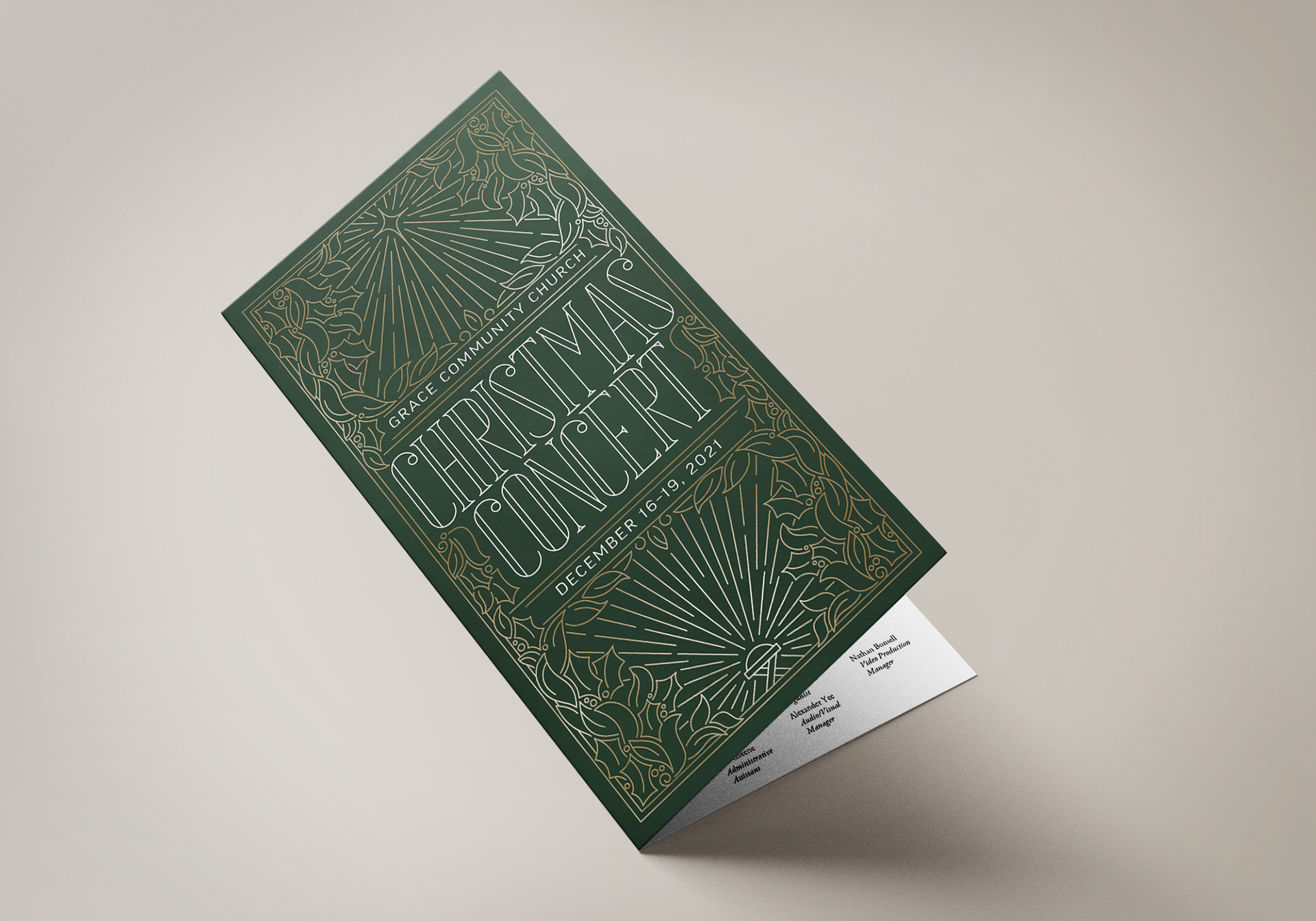 For the Grace Community Church Annual Christmas Concert, I designed a custom concert program featuring original line art illustrations and a bespoke typeface, creating a cohesive and elegant visual identity for the event. Beyond the program, I extended the design across multiple formats, including building banners, posters, flyers, website posts, email newsletters, and screen graphics, ensuring a consistent and impactful brand presence across all event promotions. The concert program was a high-quality printed piece, featuring a matte soft-touch finish with a gloss coat layer applied exclusively to the line art, creating a striking elevated effect that added depth and sophistication. This project blended artistic craftsmanship with thoughtful print and digital design, creating a visually compelling and memorable experience for attendees while maintaining a cohesive brand identity across all promotional materials.