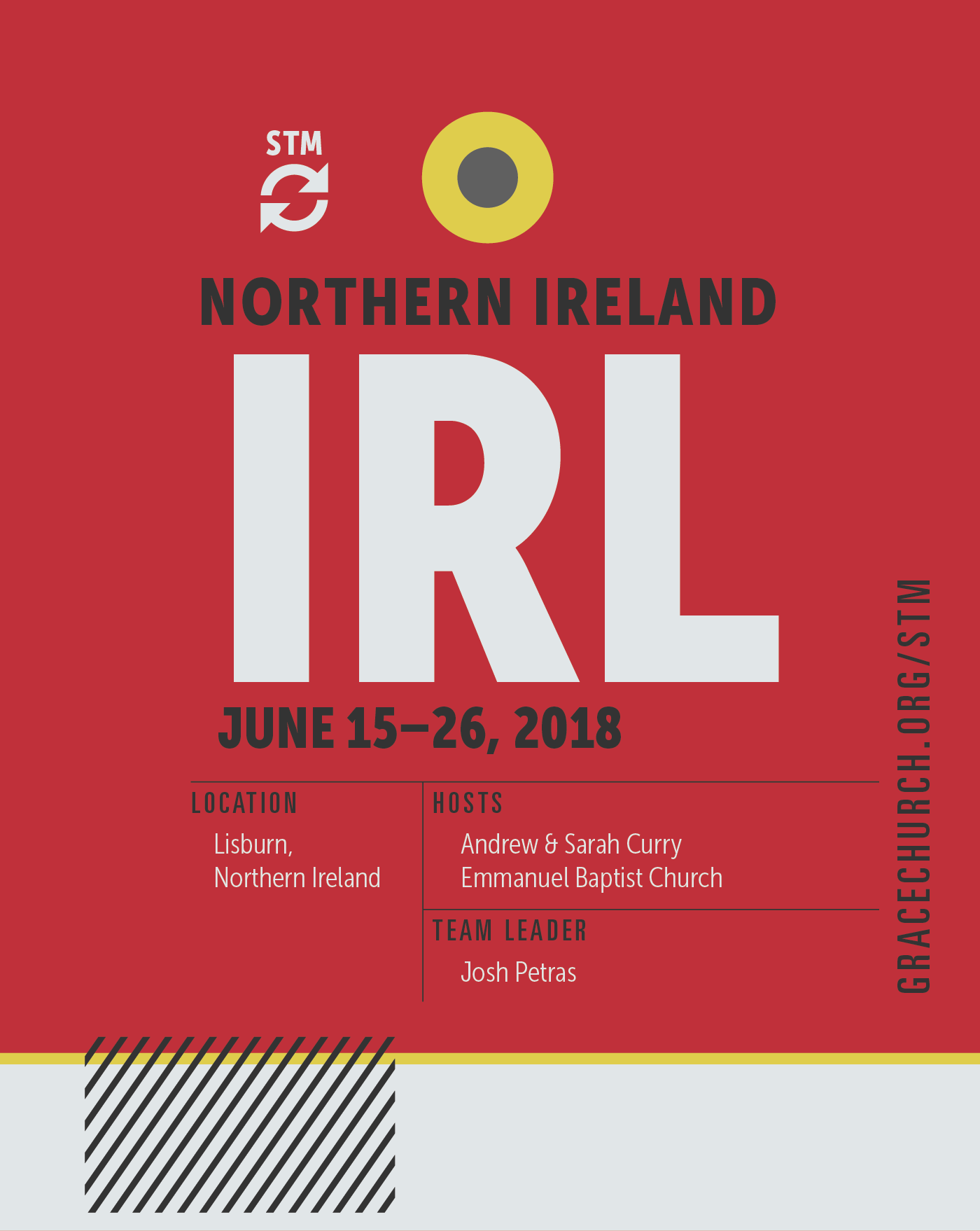 Individual badge and poster designs for Grace Community Church Short-Term Ministries (STM) teams. Design was inspired by old luggage tags which allowed an endless variation of shapes and colors to help each team stand apart. Graphics were used for individual team promotion, t-shirts, pins, website, booklets, brochures, and posters.